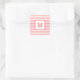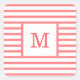 Coral Red and White Stripes Custom Monogram Square Sticker