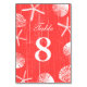 Coral Red Beach Theme Coquillages Numéros de tableau Cartes.