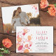 Coral red flower graphic confetti petals wedding invitation