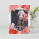 Unique and trendy congratulations graduate announcement and graduation invitation card framed with a beautiful red and blush pink coloured watercolor spring and summer floral wreath on a classic white coloured background. With room to customize or personalize with a photo, the name of the graduate, class graduation year, high school, future college or university name, and celebration party event information. Let the family, friends and neighbours know there is a happy graduate ready to conquer the world, and invite everybody to come celebrate the happy event with you!