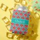 Coral Red, Teal and White Moroccan Quatrefoil Trellis Pattern #5DS, Teal Ribbon Name Monogram Label