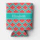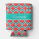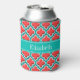 Coral Red, Teal Moroccan #5DS Teal Name Monogram Can Cooler