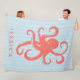 Coral Red White Cute Octopus Illustration Fleece Blanket