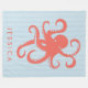 Cute coral red octopus simple illustration over white and blue stripes pattern background If you need any help customizing any of my designs, contact ArtOnWear designer. Free text formatting with live help available by request.