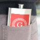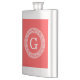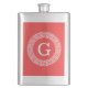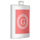 Coral Red Wht Greek Key Rnd Frame Initial Monogram Hip Flask