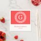 Coral Red Wht Greek Key Rnd Frame Initial Monogram Napkin