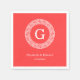 Coral Red Wht Greek Key Rnd Frame Initial Monogram Napkin