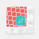 Coral Red Wht Moroccan #5 Teal 3 Initial Monogram Napkin