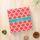 Coral Red and White Moroccan Quatrefoil Trellis Pattern #5, Teal Ribbon Name Monogram Label