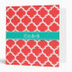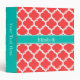 Coral Red Wht Moroccan #5 Teal Name Monogram Binder