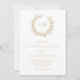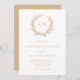Perfect for beach and nautical themed weddings, a coral wreath frames the monogram initials of the bride and groom at the top of this elegant minimal white and beige coastal invitation. The back is a solid beige colour.