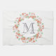 coral roses wreath monogram kitchen towel