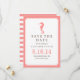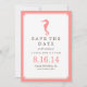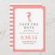 Stylish save the date announcements perfect for a summer or tropical destination wedding feature a beautiful illustration of a seahorse and an elegant nautical stripes pattern on the back. Visit our store for more colour options and matching products.