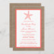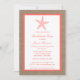Coral Starfish Beach Burlap Bachelorette Party Invitation