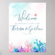 Coral Starfish, Beach wedding sign. Vibrant and bold this bridal shower invitation is great for beach weddings, destination or beach weddings. Created with pink, purple and blue coral with a simple seashell accents. Customize the text, names and date with your wedding information.