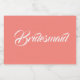 Self-adhesive labels for your wedding mini-sparkling wine bottles that feature a trendy coral colour along with "Bridesmaid" printed in white, stylized script. A great idea for when gifting your bridesmaids, as well as planning for a bachelorette party!