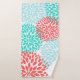 Coral Teal Aqua dahlia floral bath decor Towel Set