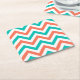 Coral, Teal, White Large Chevron ZigZag Pattern Square Paper Coaster
