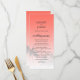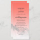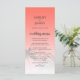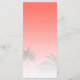 Elegant destination wedding menu with a tropical palm tree design on a bright coral background featuring elegant script and modern typography. The sunset coral fades onto a white background. Simply add your wedding details to this stylish tropical beach wedding menu. Exclusively designed for you by Happy Dolphin studio.
