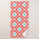 Coral, Turquoise, White Ikat Diamond Pattern Bath Towel Set