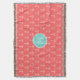 Coral White Anchors Pattern, Mint Green Monogram Throw Blanket