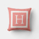 Customizeable modern and trendy coral or peach and white monogram throw pillows or cushions. Personalize your gift by adding your own initial. Choose your own font and colours to make it your own. This classic contemporary design will enhance any home decor, living room, sofa, lounge, bedroom, office, beach house, boat or university or college dorm room, nursery, teenagers, girls, boys, baby or kids rooms. Also great for college or university, teenagers or kids.