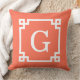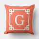 Coral White Greek Key Frame #2 Initial Monogram Throw Pillow