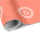 Coral White Greek Key Rnd Frame Initial Monogram Wrapping Paper