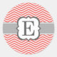 Coral White Monogram Letter E Chevron Classic Round Sticker