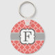 Coral White Monogram Letter F Quatrefoil Keychain