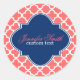 Coral & White Quatrefoil Geometric Pattern Classic Round Sticker