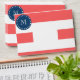 Coral White Stripes Pattern, Navy Blue Monogram Envelopes