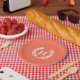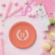 Coral White Wheat Laurel Wreath Initial Monogram Paper Plate