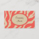 A coral and cream zebra print decorates this business card. Customize the information to suit your needs. Use this business card for a salon, spa, boutique, nail salon, shop, etc...The design is from original art.