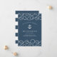 Nos annonces de déménagement chic côtier en bleu port présentent une corde nautique blanche avec l'illustration de l'ancre d'un navire. "Nous avons jeté l'ancre !" apparaît au-dessus de vos nouvelles coordonnées en lettres de style nautique.