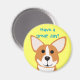 Whimsical Pembroke Welsh Corgi Dog Art Magnet. "Have a great day!" Click the Customize button to change the background colour to match your kitchen, or to change the greeting!