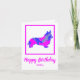 Pembroke Welsh Corgi silhouette de chien en rose chaud fou et bleu brillant abstrait motif moderne. Le message d'anniversaire à l'intérieur peut être changé à tout ce que vous voulez. Personnalisez avec le nom sur le devant.
