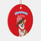 Celebrate the holidays with a summer twist! This charming "Christmas in July" ornament features an adorable corgi wearing a red-chequered Santa hat with leopard print trim and a cozy scarf. Set against a bold red background, it's the perfect blend of cute and festive for dog lovers and holiday enthusiasts alike. Hang it on your tree, gift it to a friend, or add it to your seasonal decor collection for a fun and quirky touch. Ideal for those who love corgis, Christmas, and a little July cheer!