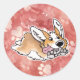 A cute, cartoon corgi dog leaps through the air, on tiny legs. A great design for fans of the breed and dog-lovers of all types!