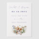 Vellum paper save the date template with Corgi dog design. Wildflowers and puppy image at the bottom of transparent paper. Customize for your event using five lines text in script and printed fonts in dark periwinkle blue. Easily change the text colour in the design tool, or ask me for help.