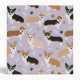 Cute Corgi dogs with fawn, red and tri coat colours with paw prints and dog bones pattern.