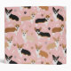 Cute Corgi dogs with fawn, red and tri coat colors with paw prints and dog bones pattern.