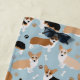 Cute Corgi dogs with fawn, red and tri coat colours with paw prints and dog bones pattern.