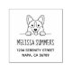 Simple cartoon illustration of a happy corgi peeking from behind a divider. Only its head and front paws are visible. Customize with your own address.