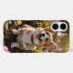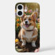 A cheerful corgi puppy enjoys a playful day in a vibrant, sunlit garden.