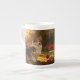 This mug is imprinted with a Bach Solos Suite for Cello. It was purchased as a thank you gift for a professional cellist friend who often performs this work. The cup is made of a high-grade ceramic and is fairly light. The walls are not too thick and it is a small to medium size. It's well finished, has a high-gloss glaze, and looks very elegant. The Bach Solo Suite score on the example I received was clear and had high contrast. Even though the staffs were small, the music was easy to read. The cellist who received this cup immediately knew what the music was as soon as she set eyes on it.
