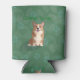 Artwork of a cute sitting corgi on a green background with hearted paws. Ideal for dog lovers of all ages.