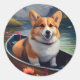 Corgi on a Paddle: A Scenic Adventure Classic Round Sticker