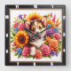 This delightful wall clock features an adorable Corgi puppy surrounded by a vibrant array of sunflowers and roses. Its charming and colourful design brings a touch of garden-inspired joy to any room, making it a perfect decorative timepiece for pet lovers.