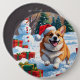 Corgi Running in Snow with Christmas Hat 6 Inch Round Button